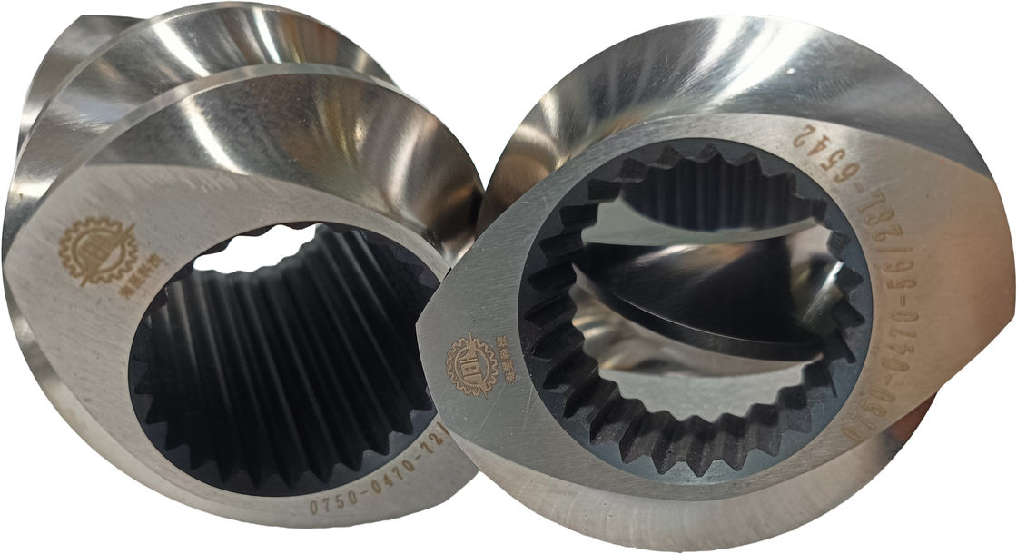 Productnaam:Smeltezone-element voor twee-schroef-extruderonderdelen Werktuigstaal/6542 Materiaal 30°/45°/60°/90° Hoek
